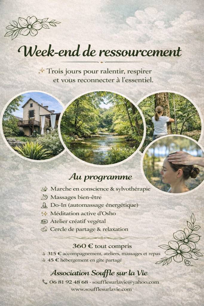 Week-end de Ressourcement à Najac 8-9 et 10 mai réservation : soufflesurlavie@yahoo.com